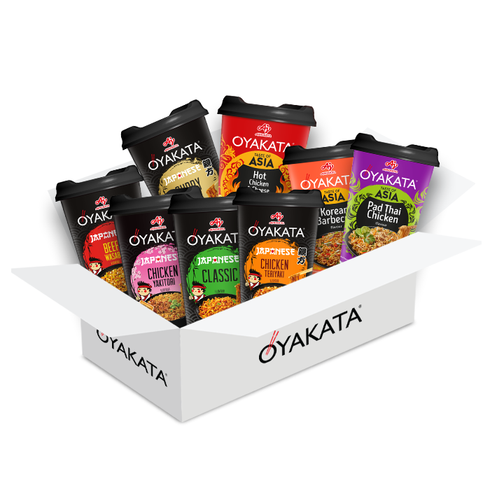 Ένα κιβώτιο με οκτώ συσκευασίες OYAKATA, έτοιμο να σας ταξιδέψει στα βάθη της ιαπωνικής και ευρύτερης ασιατικής κουζίνας!